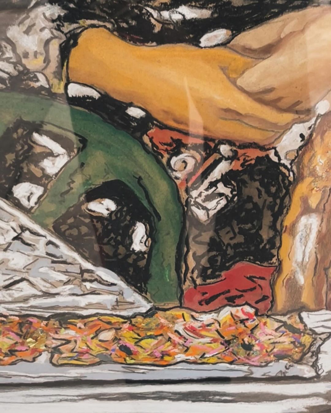 One notable aspect of Bowale’s work is his collaboration with author Tokelo Hlagala, whose short stories have influenced the exhibition. By incorporating text from the story “For Whom The Bell Tolls” into his drawings, Bowale creates a unique blend of visual and literary art.