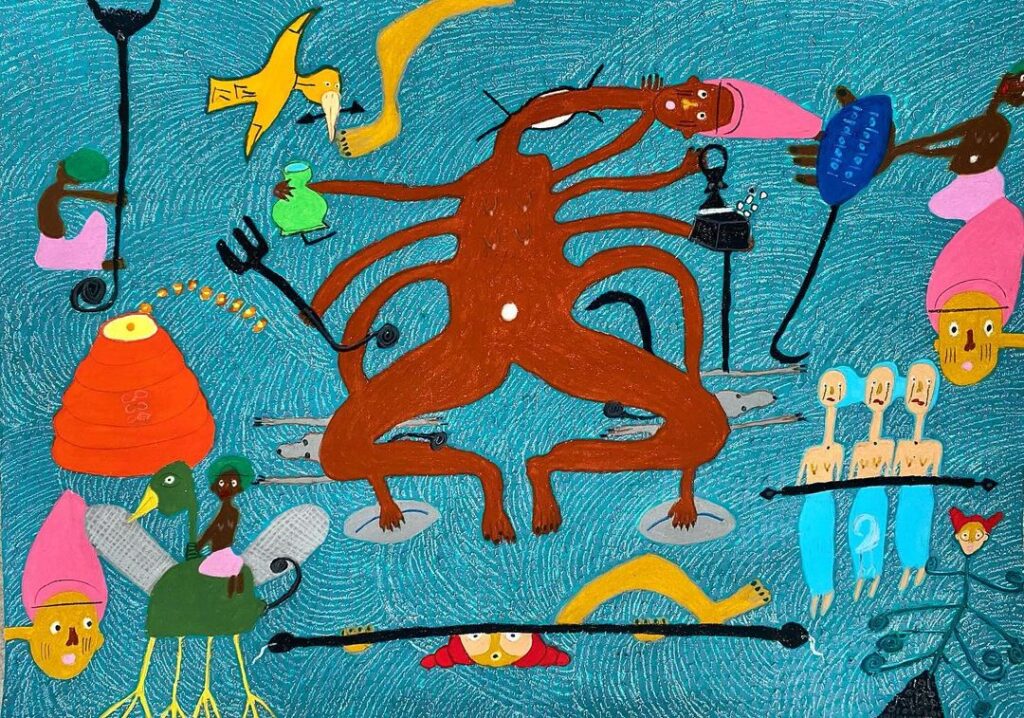 Inspired by the memories of her beloved grandmother, Vilakazi’s artwork is a heartfelt tribute to her Mtshuku. The paintings and personal reflections in “Alikho izulu?” reveal the profound impact of her grandmother’s passing and the spiritual connection she feels towards her. Each artwork is a vibrant dreamscape, inviting viewers to experience the merging of memory, imagination, and ancestral spirits.