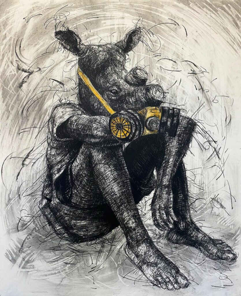 One striking aspect of Cromwell’s art is his deliberate use of colours. While he primarily employs charcoal black as the main colour, he is careful not to let it overpower the intricate details of his images. When colour is introduced, it serves as a complementary element, enhancing the impact of the black and the details. Cromwell continues to experiment with colour, always maintaining the same intensity and attention to detail that define his work.