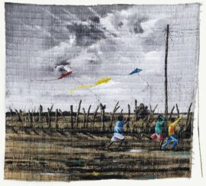 In addition to painting, Maluleke incorporates scratching and etching techniques to bring the grass mats to life, turning them into three-dimensional parts of the images.