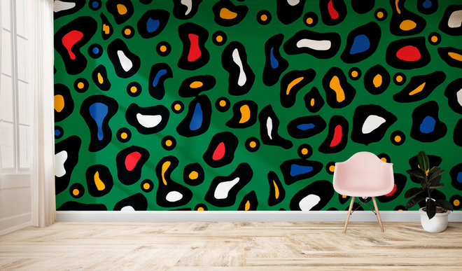 Another new wallpaper collection is “ISIPHIWO SAMATHONGO” (translates to – a gift from my ancestors) by Viva Sage Thabethe. He is the new South African artist to join Fabric Bank. Viva Sage is a self-taught photographer/visual artist from Soweto, South Africa, currently based in Belgium. His creative work is inspired by the culture of South Africa, hence his designs embrace the colors of the national flag of the land. The artwork he creates is rough around the edges and that is what he likes about his visual work, a diamond in the rough. He finds pattern design as creative freedom. He uses the African narrative to create artwork that values heritage with an intention to preserve old traditions and educate the next generation about its ancestors through art and storytelling.