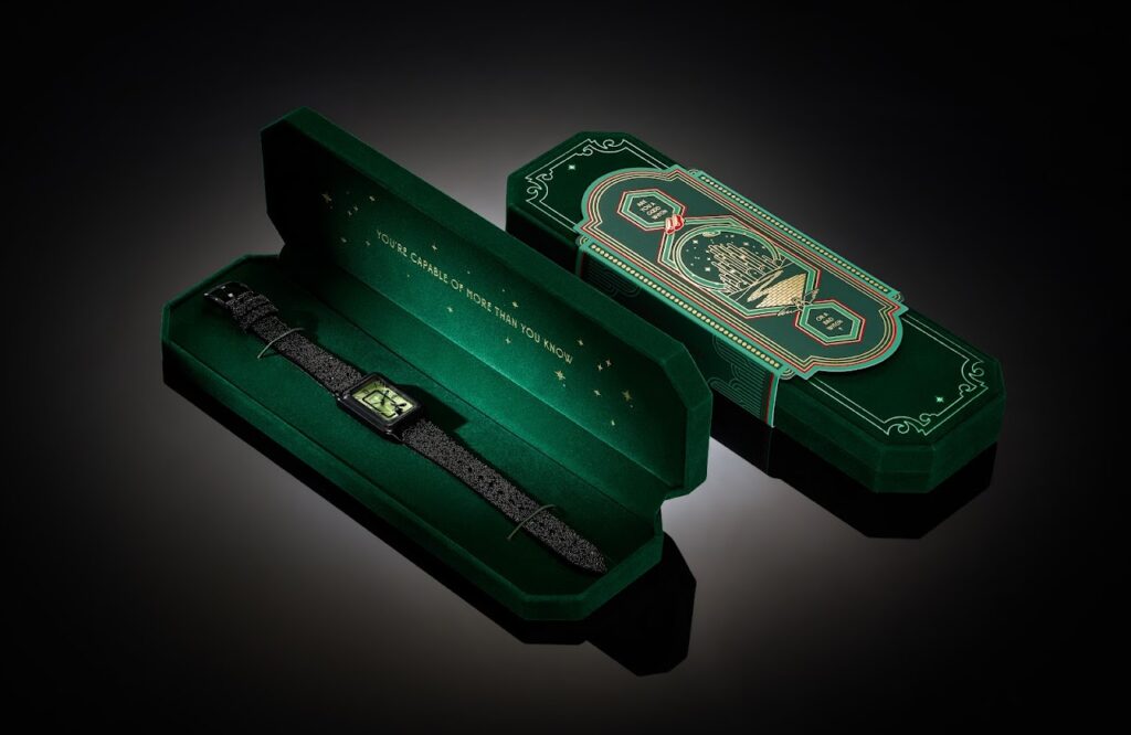 At the heart of this collection are the limited-edition Raquel Watch styles (R4299 each), with three standout designs inspired by the most beloved (and bewitching) characters. Each watch showcases a glitz leather strap, a 26mm case, and a rotating second disk. The Wicked WitchTM watch captivates with her broomstick-riding silhouette over a vivid green dial. The Glinda the Good WitchTM watch shines in a rose gold finish with pink crystal accents, embodying Glinda’s radiant beauty. Completing the trio is the DorothyTM watch, a tribute to the legendary Ruby SlippersTM, sparkling boldly in vibrant red.
