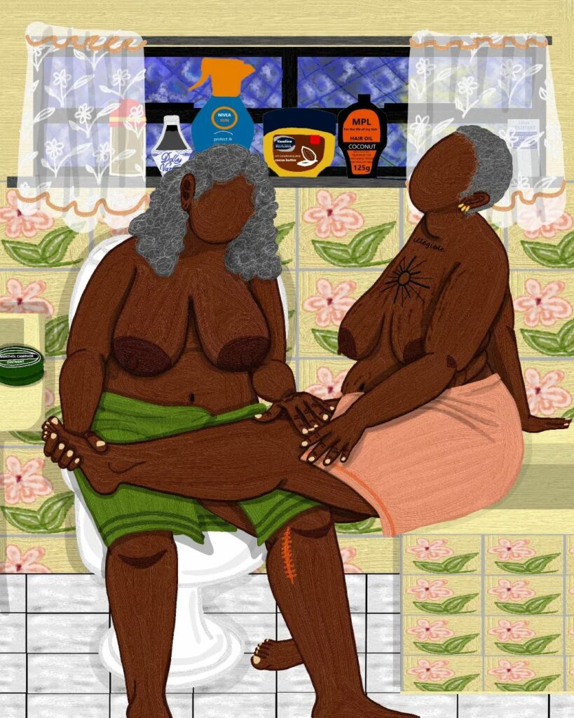 In 2019, Mercy took a leap faith and pursued formal training in Theatre and Performance Arts, focusing on directing and writing. They wrote their first play-script, titled “Imigqomo Yase Gomorrah” which was in the process of being staged when the COVID-19 pandemic struck in 2020. The pandemic brought disruption and interruption but also served as a catalyst for Mercy’s return to visual art.