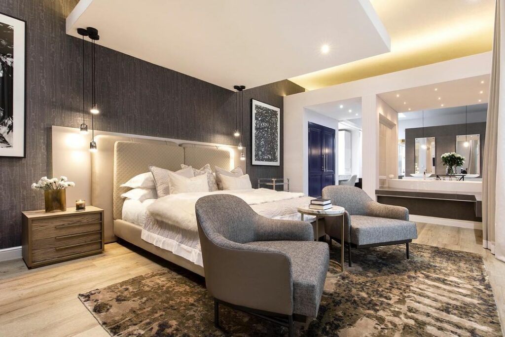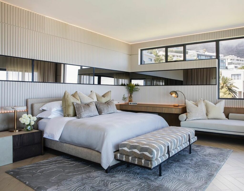 Textures are a vital element in Nxumalo’s design process. He meticulously integrates natural materials like wood, stone, and organic fabrics to infuse spaces with tactile appeal. From the use of vivid colors, every texture is carefully selected to evoke a sense of comfort and opulence. The interplay of textures adds dimension and visual intrigue, all of this creates a space that invites touch and exploration.