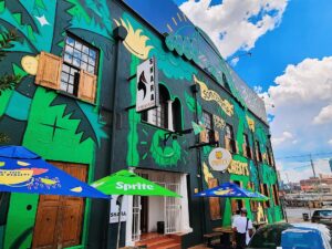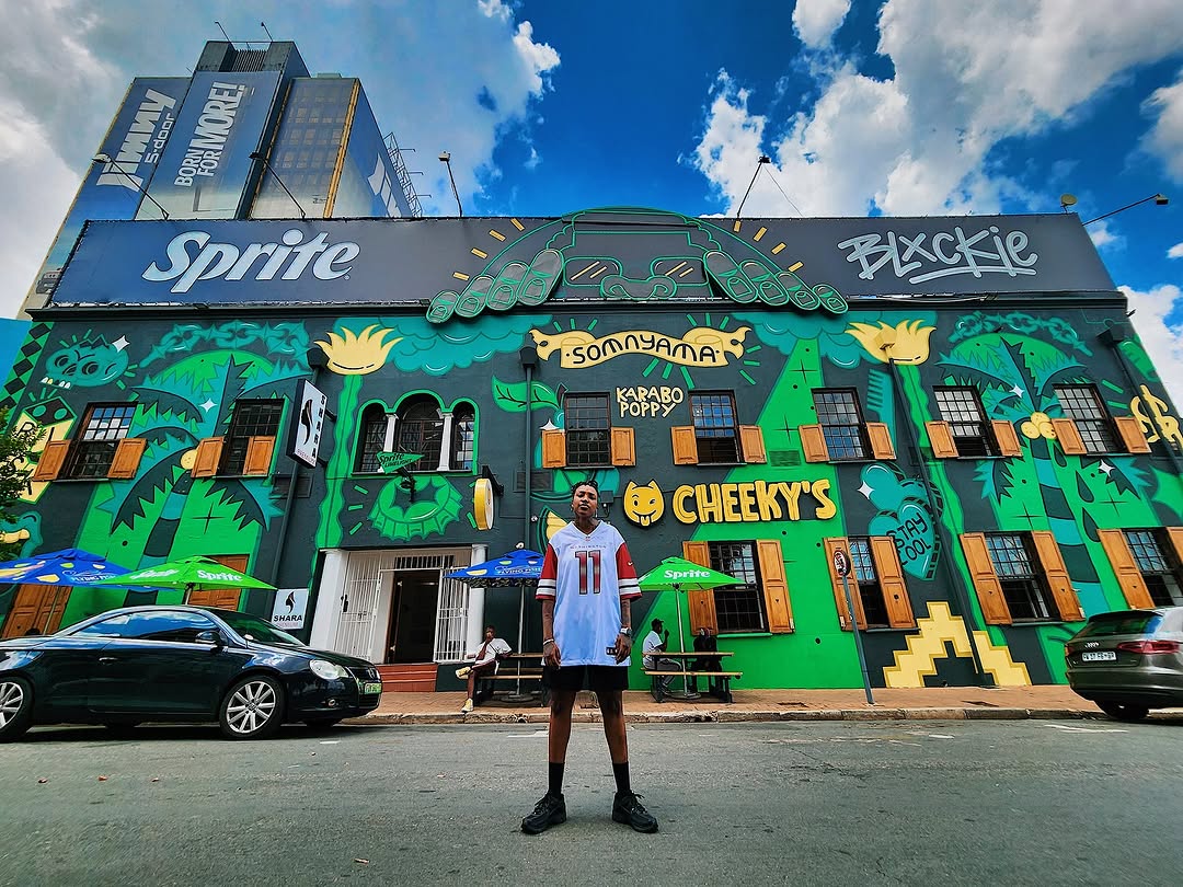 Karabo Poppy has created a new mural in Braamfontein, adding acreative touch to the streets of Braam. The mural, painted on the front of Cheeky’s, was revealed during the launch of Blxckie’s latest single, South.