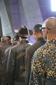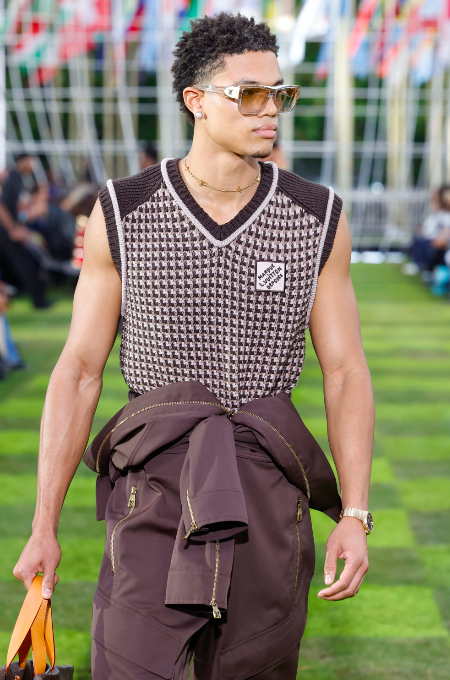With a panoramic view of the French capital, the show unfolds on the rooftop of La Maison de l’UNESCO to the tones of “Triumphus Cosmos”, a composition written by Pharrell Williams. Constructed in 1958 in the name of uniting humanity in world peace through culture, the site provides the symbolic grounds for a convention of LVERS, the community at the heart of the creative ecosystem that defines the Louis Vuitton Studio Prêt-à-Porter Homme, its ateliers and collaborators. Here, humans of different backgrounds work together towards a shared vision founded in warmth, wellbeing and welcome-ness, reflected in the global network that energises the Maison. Around the world, the LVERS ideology connects likeminded humans in an appreciation for the core values of Louis Vuitton: discernment, savoir-faire and travel as an eternal source of vitality and connection to our shared humanity.