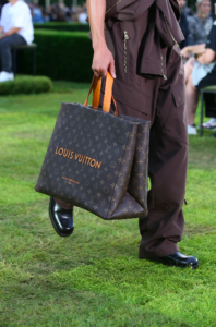 The collection debuts a line of Soft Leather Goods. Comprised of  bag icons from the Maison’s heritage – such as the Alma, the Christopher and the Neverfull – which have typically been made in canvas twill, the silhouettes are re-crafted in super supple, highly luxurious leather with aged VVN trimmings and emblazoned with the historic brown Monogram, which has been slightly increased in dimension. The line relaunches emblematic archive shapes including the Danube, the Nile, the Amazon and the Bastille, while multi-pocket adornment reanimates and highlights classic silhouettes such as the Montsouris and the Noe. An exceptional Keepall is covered entirely in rhinestone. All bags in the Soft Leather Goods line are adorned with metal plate charms inspired by archival trunk tags.