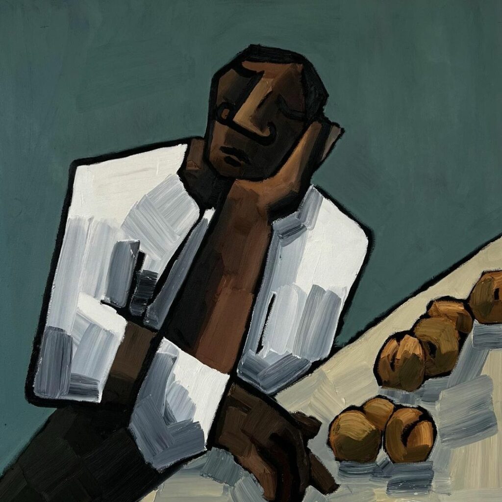 Mmangaliso Nzuza, a visual artist  from Durban, captures the essence of personal history and popular culture in his figurative artwork. With a unique style influenced by cubism, Nzuza’s large-scale oil paintings showcase his skillful use of impasto techniques and bold brushwork. Through introspective portrayals and a clever interplay of colour and composition, he conveys depth and complexity in his subjects.