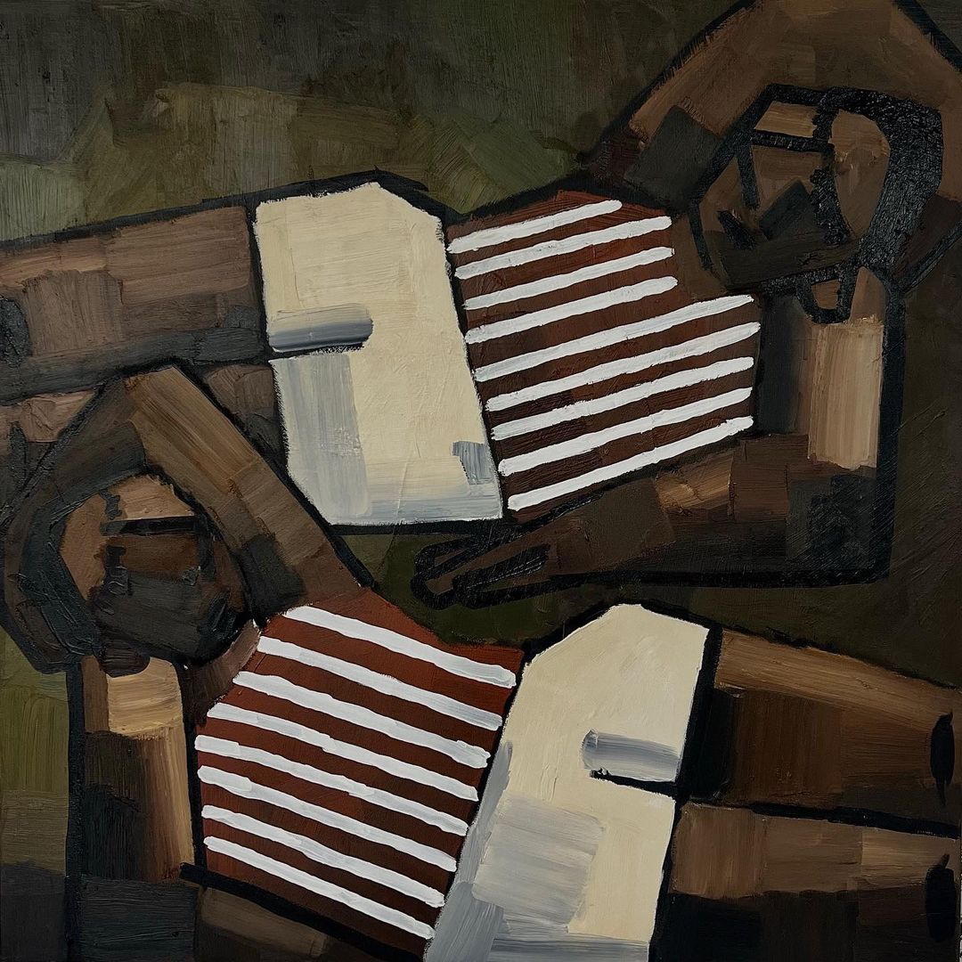 Mmangaliso Nzuza, a visual artist  from Durban, captures the essence of personal history and popular culture in his figurative artwork. With a unique style influenced by cubism, Nzuza’s large-scale oil paintings showcase his skillful use of impasto techniques and bold brushwork. Through introspective portrayals and a clever interplay of colour and composition, he conveys depth and complexity in his subjects.