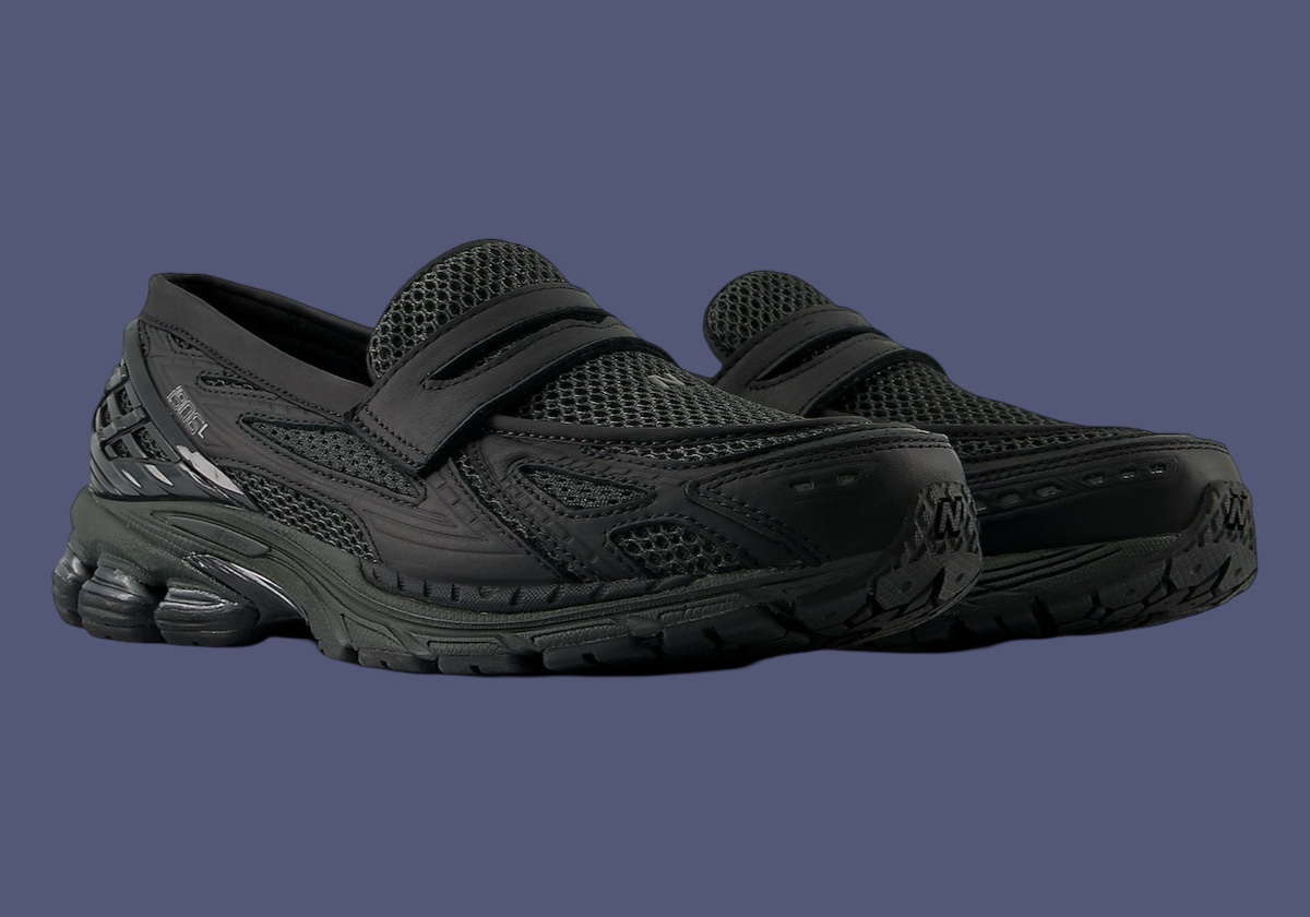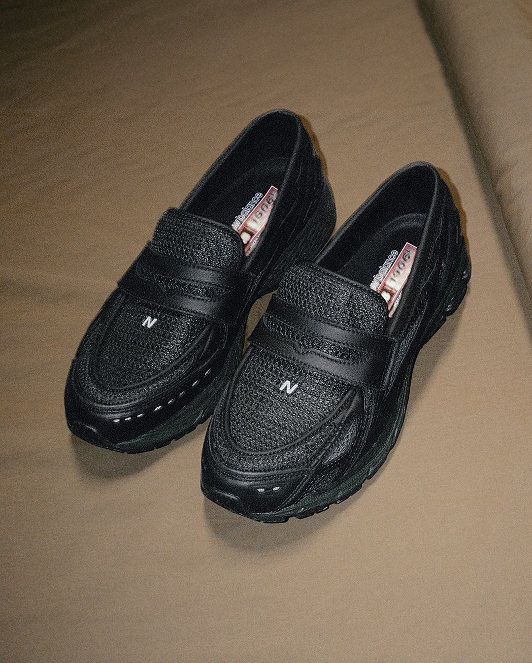 Despite its new formal aesthetic, the 1906L includes geometric overlays on the sides and back, reminiscent of its 1906R lineage. A new stitched forefoot cup wraps around the toe, adding to the loafer’s high-fashion appeal.