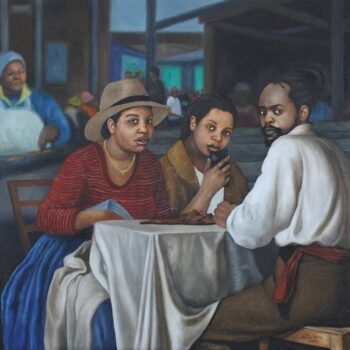 One of the standout pieces in the exhibition is Patricks reimagined version of “Supper at Emmaus.” In this piece, he places Julius Malema at the center of the table. By combining religious imagery with current political themes. Patrick encourages attendees to think about complex issues of power, redemption and the dual nature of leaders in society. Are they heroes or troublemakers?