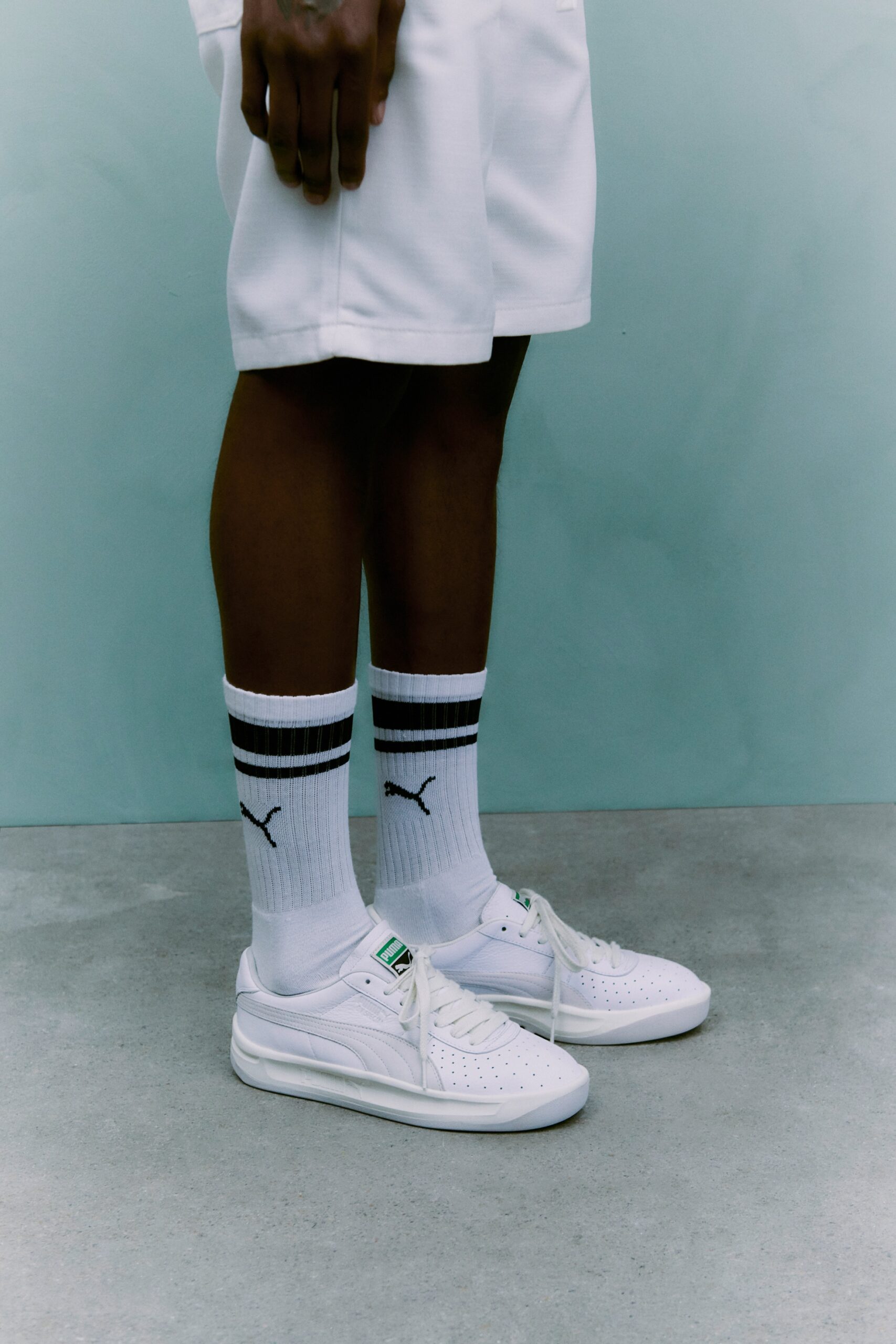 Originally introduced in the 1980s and named the PUMA California, the training silhouette was described as “universal” by PUMA catalogues. The heritage low-top silhouette is best known for its ultra-cushioned sole unit, as well as features like its tumbled leather upper and perforated toebox. Later renamed the GV Special for Argentinian tennis maestro Guillermo Vilas, the shoe became a favourite of terrace subculture, as football casuals developed a taste for performance models like the GV Special, pairing them with dark, straight-legged jeans.