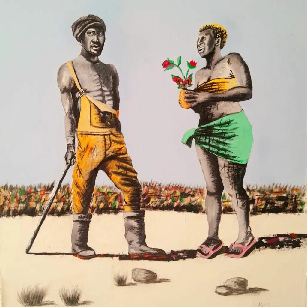 Retsidisitswe Ngqekeza, born in 2003 in the rural town of Mohale’s Hoek in Lesotho, is a young artist whose passion for visual arts has propelled him on a remarkable journey. Inspired by his father, a clay maker, Ngqekeza began exploring his artistic talents through clay, drawing and painting. It was only later, in the Free State he discovered his true calling as an artist.