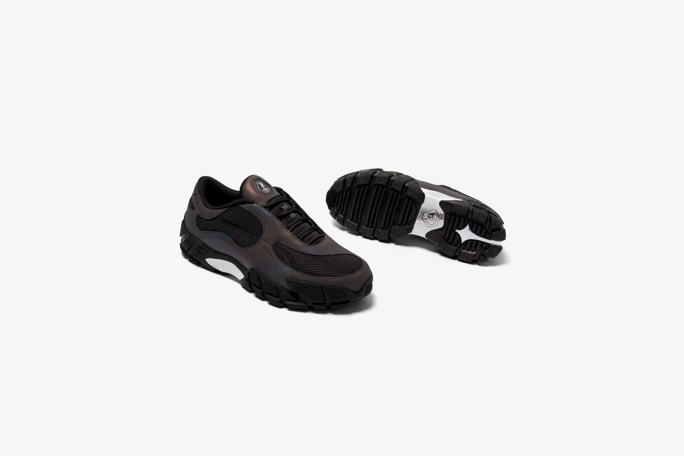 The PUMA Skope Forever is an all-new footwear style co-created by Skepta and PUMA, inspired by early-2000s footwear designs and debuting in a special iridescent colourway. Robust tooling serves as the foundation for the upper, featuring a mesh underlay wrapped in fluid opalescent panels. Silver accents emerge from beneath the Skope Forever, contrasting with its covert colourway. A special PUMA x Skepta badge features on the tongue, completing the tech-luxe silhouette.
