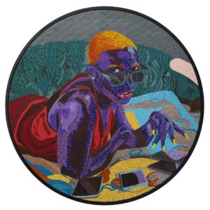 Qhamanande Maswana is known for his paintings that celebrate African beauty, spirituality, and folklore. His piece, “Ngonyezi”, was made with delicate glass seed beads at the Qaqambile Bead Studio. Originally from Qonce in the Eastern Cape, Maswana has shown his work in South Africa and other countries, recently completing a residency in Austria.