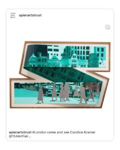 Candice Kramer, based in Johannesburg, taps into themes of change and permanence in her work. Her piece, “Jozi Walkers”, was created in partnership with HUB Mosaic Studio, using hand-cut stone and Venetian glass. Inspired by old maps, family photos, and the changing identity of Johannesburg.