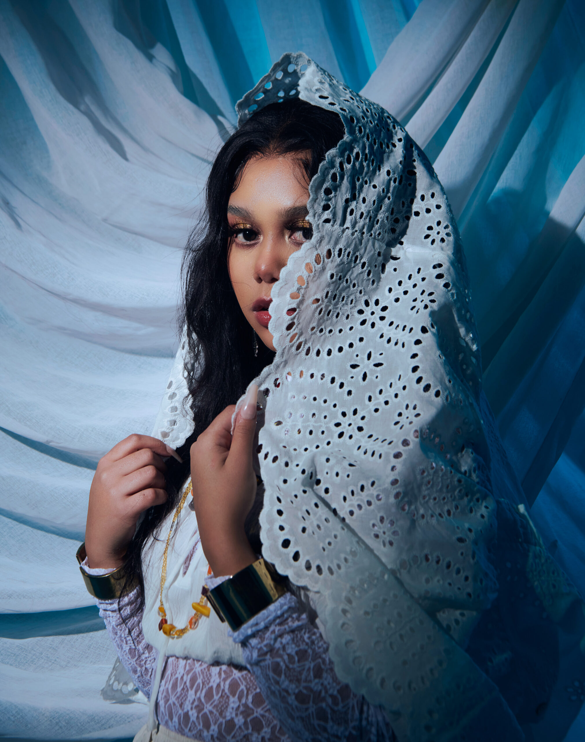 With a keen eye for capturing the essence of his subjects, David Blaq brought his signature style to the cover shoot, infusing each frame with a sense of artistic brilliance. The resulting images revealed lordkez in a breathtakingly divine light, reminiscent of a modern-day goddess. Dressed in elegant white garments, adorned with exquisite golden jewelry, she exuded a captivating presence that commanded attention.