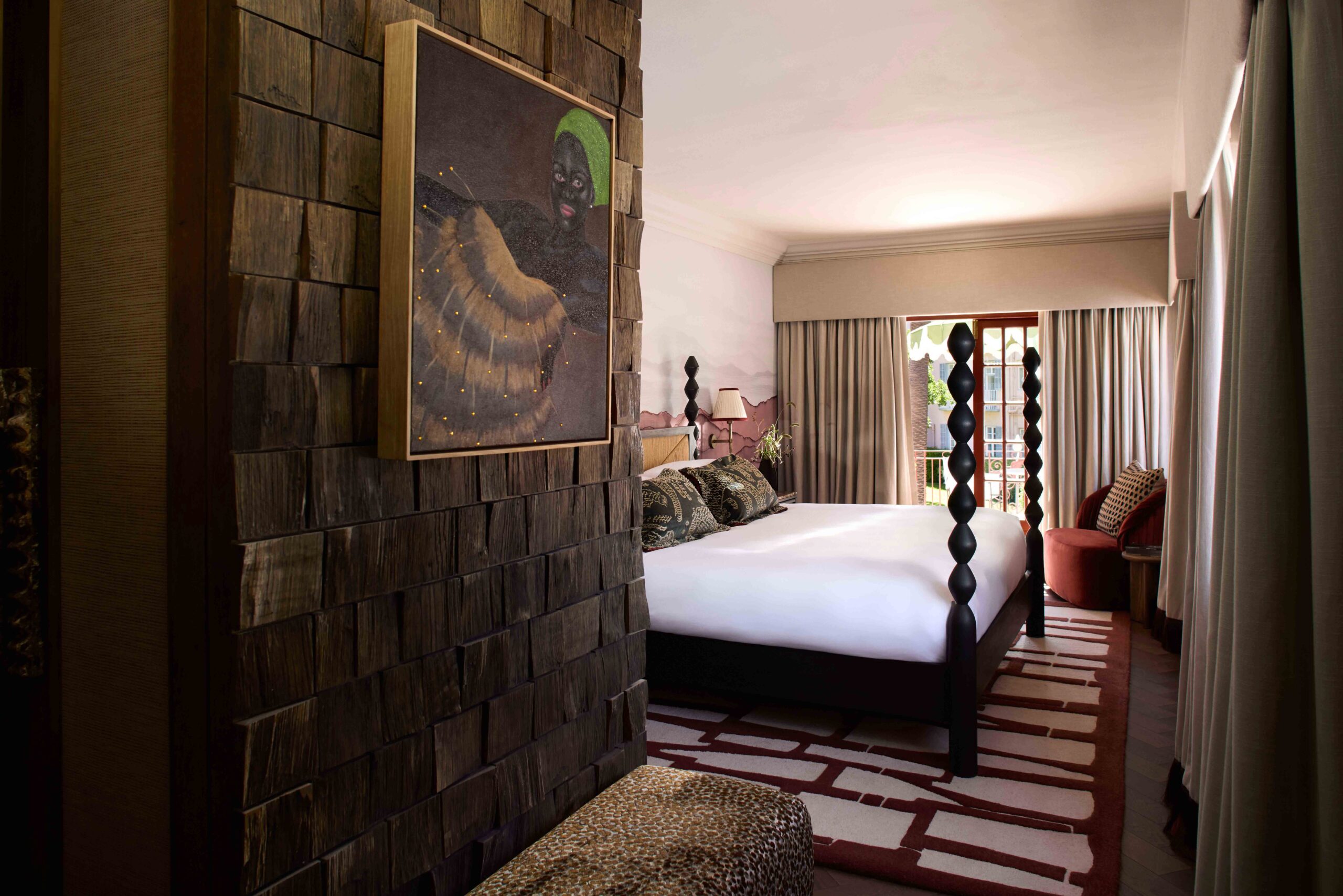 Nestled along the hotel’s iconic Palm Avenue, the THEBE MAGUGU SUITE is a two‑storey sanctuary that fuses African heritage with English sensibility. Designed in collaboration with StudioLandt, the suite is shaped around shared rituals of gathering, dining, retreat, and rest – creating an atmosphere that deepens a guest’s connection to place.